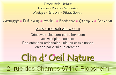 Clin d'oeil nature est aussi une boutique de créations artisanales, des pièces uniques, made in Alsace.