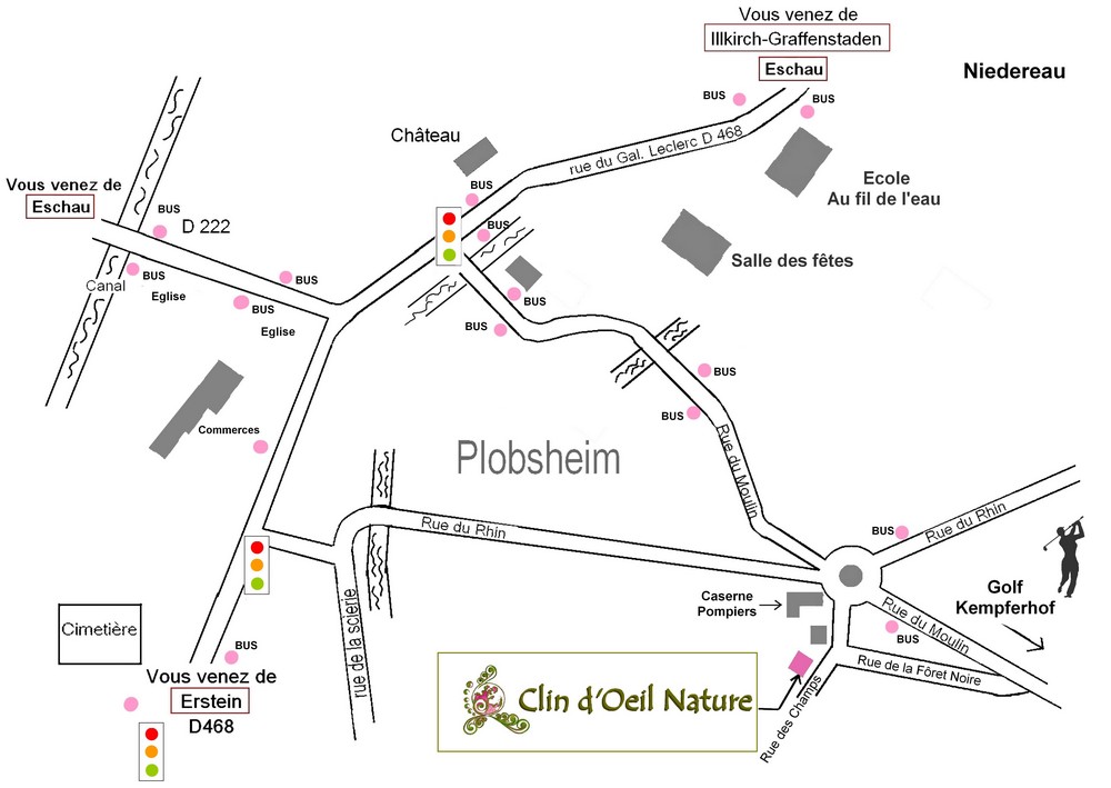 Contacter Clin d'Oeil Nature avec le formulaire de contact ci-dessous ___________________________________ Clin d'Oeil Nature 2, rue des champs 67115 PLOBSHEIM +33. (0)6 25 58 37 83 contact@clindoeilnature.com Pour venir à Plobsheim Votre itinéraire ou Transports CTS Tram A : Direction Illkirch - Arrêt Graffenstaden Puis Bus ligne 67 Direction Plobsheim - Arrêt Rhin | .... | ![]() |
